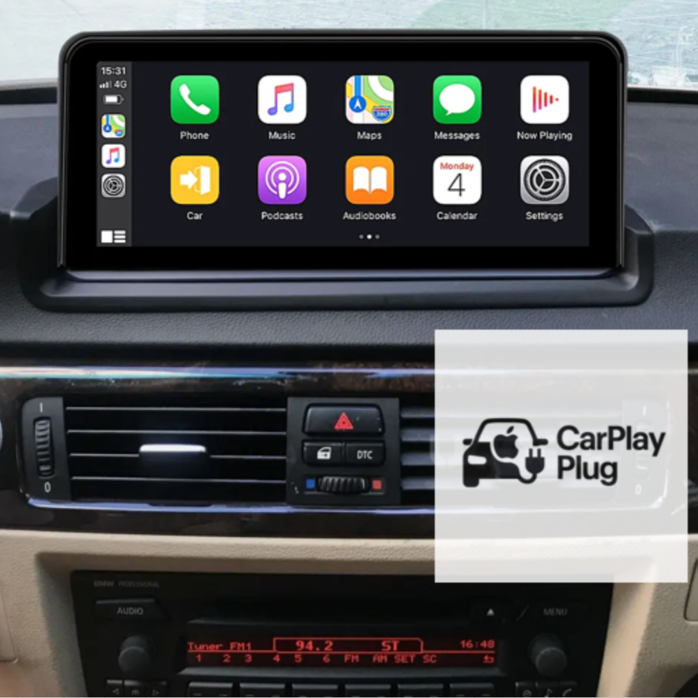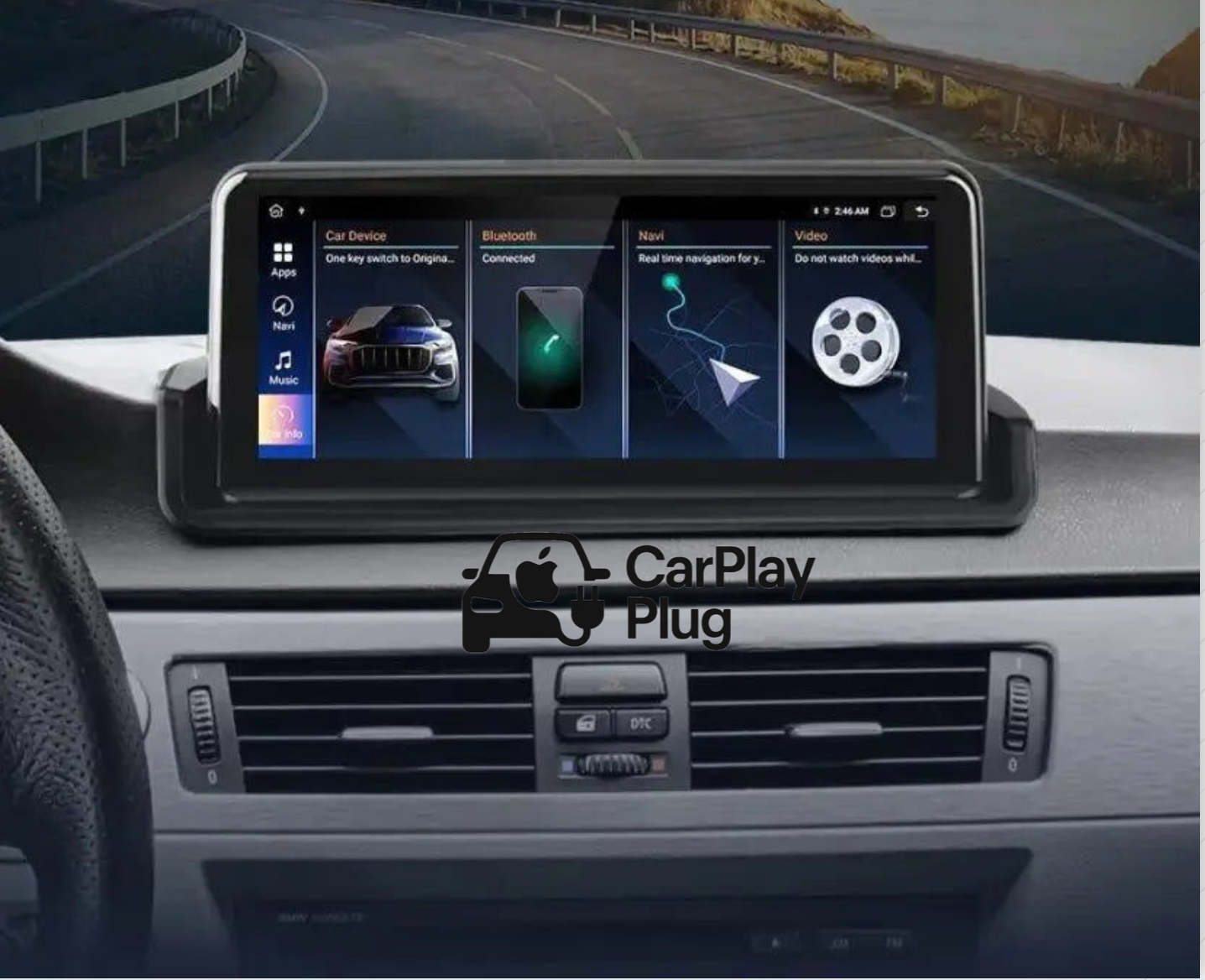 This 10.25" car radio upgrade offers wireless Apple CarPlay and Android Auto compatibility for BMW 3 Series E90, E91, E92, and E93 models from 2005 to 2011, designed for original CIC and CCC systems. It features seamless Bluetooth connectivity for calls and media, plus USB support. The unit retains all original car functions and displays key vehicle data like fuel levels, speed, and temperature. Equipped with built-in GPS and AM/FM radio accessible through the original interface, it also supports a multi-touch 10.25" screen and reverse camera input.