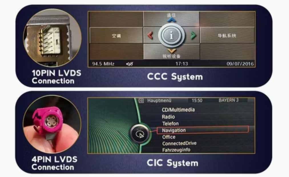 This 10.25" car radio with wireless Apple CarPlay and Android Auto is designed for BMW 3 Series E90, E91, E92, E93 (2005–2011) equipped with the original CIC and CCC system. It enables seamless wireless connection via Bluetooth for Apple CarPlay and supports Bluetooth for calls and media playback alongside USB connectivity. The unit retains all original vehicle functions and displays essential car information such as fuel level, speed, and temperature. Features include built-in GPS and AM/FM radio (operation through the original radio interface), all accessible via a responsive multi-touch 10.25" screen.